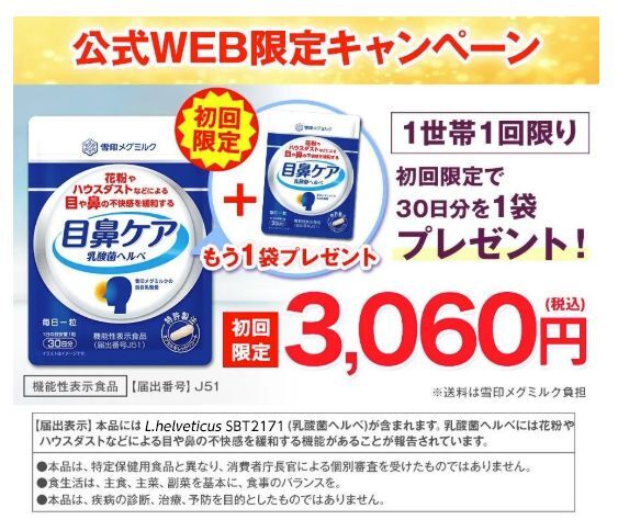 ●届出表示:本品にはL. helveticus SBT2171(乳酸菌ヘルベ)が含まれます。乳酸菌ヘルベには花粉やハウスダストなどによる目や鼻の不快感を緩和する機能があることが報告されています。