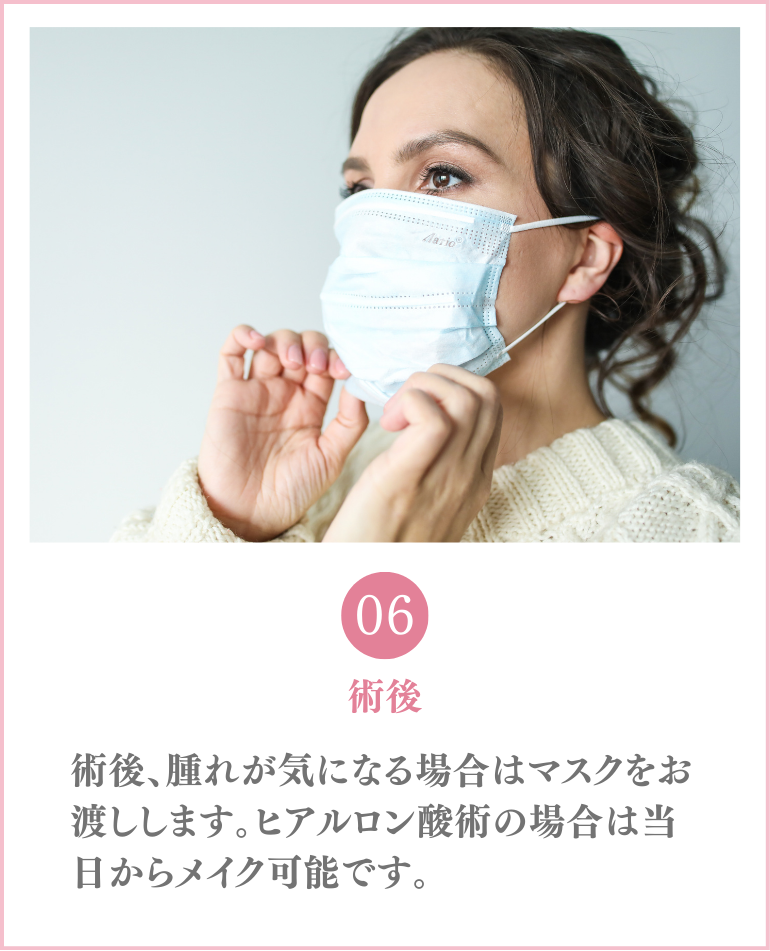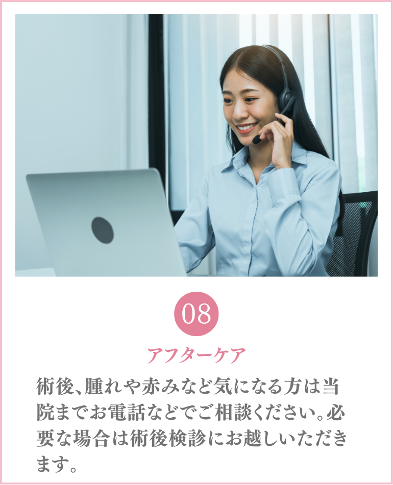 当院ではアフターケアにおいて痛み止めも処方しておりますので、医師にご相談ください。