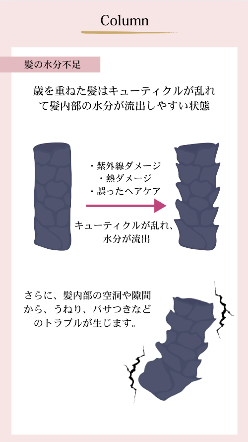 髪に必要な水分を保つことは、髪の健康を維持するために非常に重要です。水分が不足すると、髪がパサつき、ダメージを受けやすくなります。適切な水分補給により、髪の柔軟性が増し、ツヤや滑らかさが保たれ、健康的な印象を与えることができます。