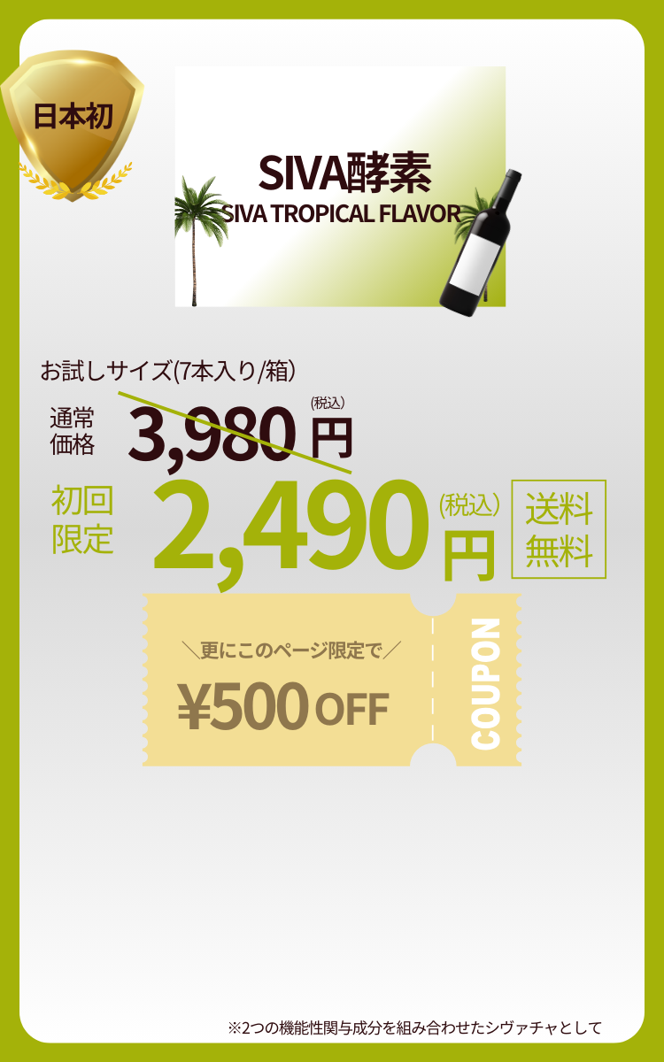 - 2回目以降は30日分のお届けとなり、2~3回目は定価¥11,980(税込)より25%OFFの¥8,985(税込)、4~5回目は30%OFFの¥8,386(税込)、6~7回目は35%OFFの¥7,787(税込)、8回目以降は40%OFFの¥7,188(税込)となります。