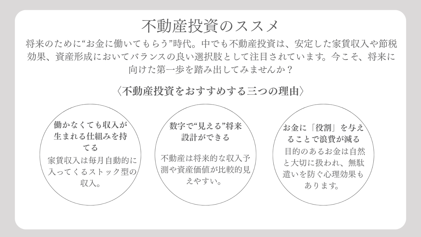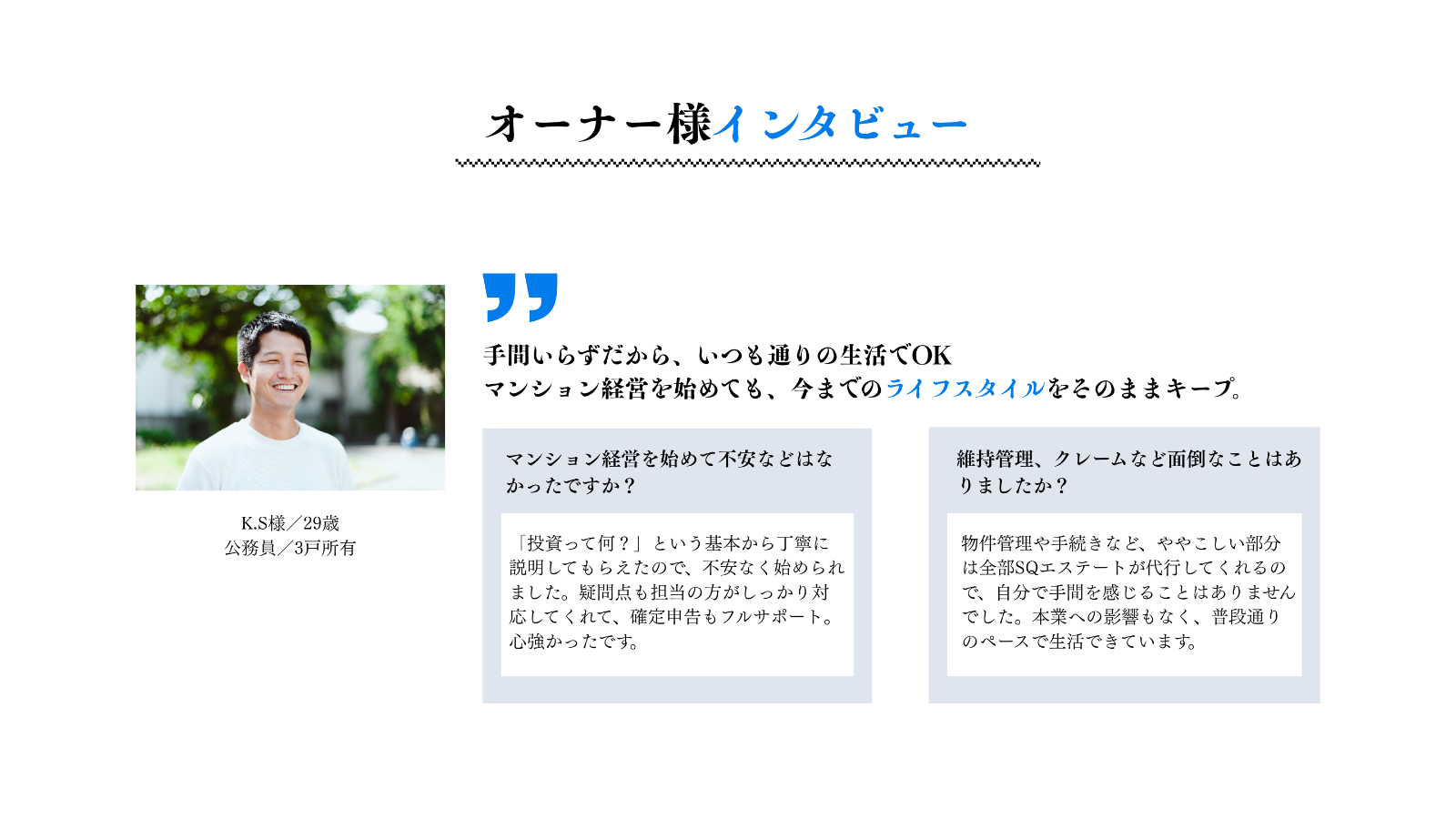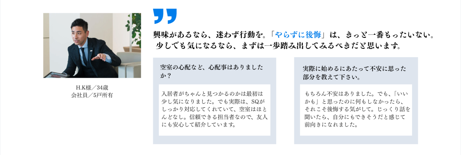 ※ 上記は不動産投資に対する個人の感想であり、投資運用成果については個人差があることを予めご了承ください。